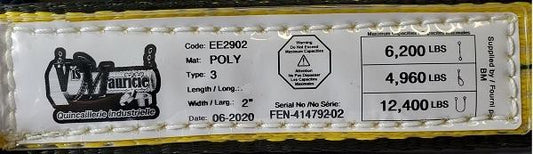 Yellow Web Sling With Reinforced Eye In Polyester 2" Width * 2' * 2 plies Grade 5