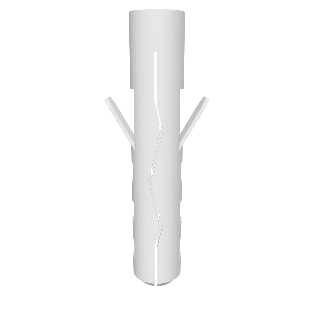 Also known as wall plugs, these anchors expand when installed to reinforce the hole and resist stripping. They have a ridged body with fins that prevent spinning during installation. Install flush with the surface. Then, thread a screw through your fixture and into the anchor. To determine screw length, add the anchor length to the fixture thickness and choose a screw equal to or longer than this.