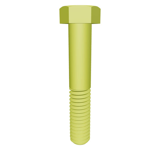 This hexagonal bolt has a length of 6-1/2 with a threading of 1/2-13 [Partially Threaded]. It is made of yellow zinc plated and thus provide medium resistance to corrosion in dry environments and low resistance in wet environments, but Yellow Zinc provide a higher corrosion resistance than regular zinc.
