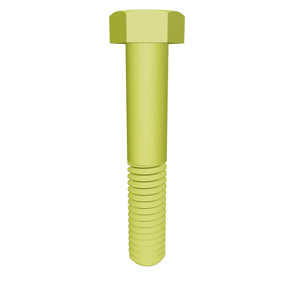This hexagonal bolt has a length of 7-1/2 with a threading of 1/2-13 [Partially Threaded]. It is made of yellow zinc plated and thus provide medium resistance to corrosion in dry environments and low resistance in wet environments, but Yellow Zinc provide a higher corrosion resistance than regular zinc.